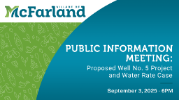 • Public Information Meeting - Proposed Well No. 5 Project & Water Rate Case | September 3, 2025